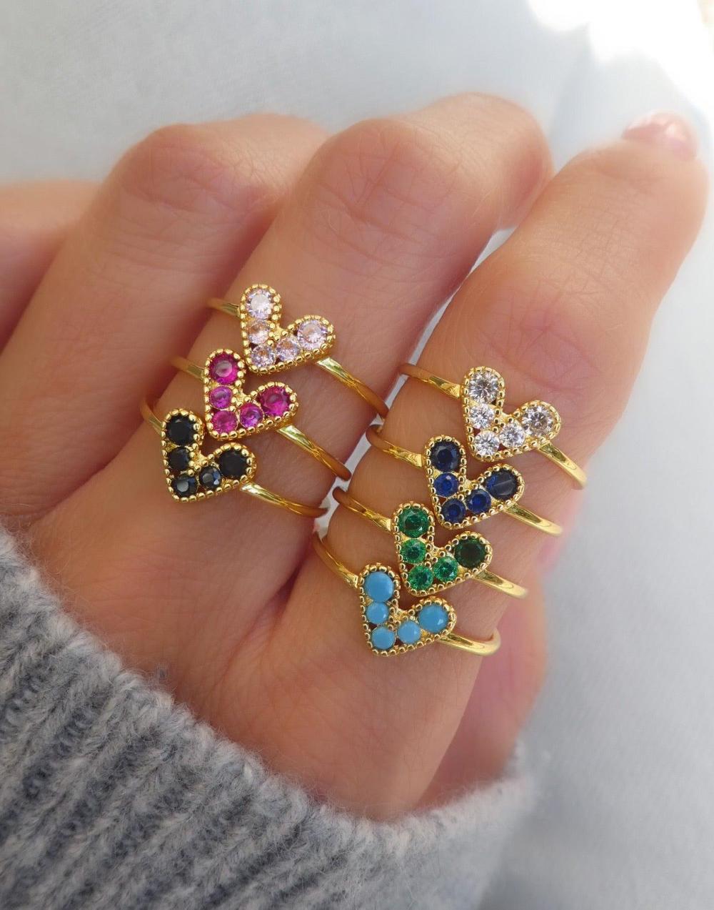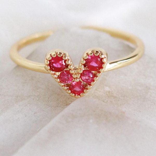 Women Mini Crystal Heart Ring (Pink) | Simple Rings